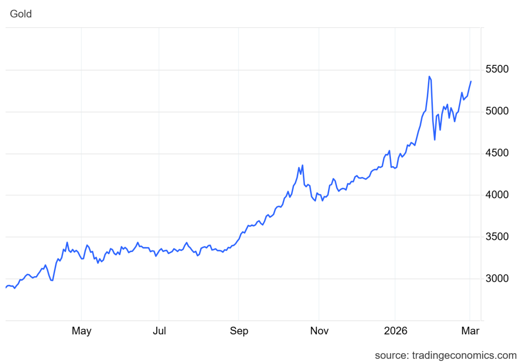 • Harga emas naik 2% ke level USD5,278/ons pada akhir pekan. Harga emas diperkirakan akan kembali menguat di tengah semakin memanasnya tensi antara AS-Israel dan Iran.