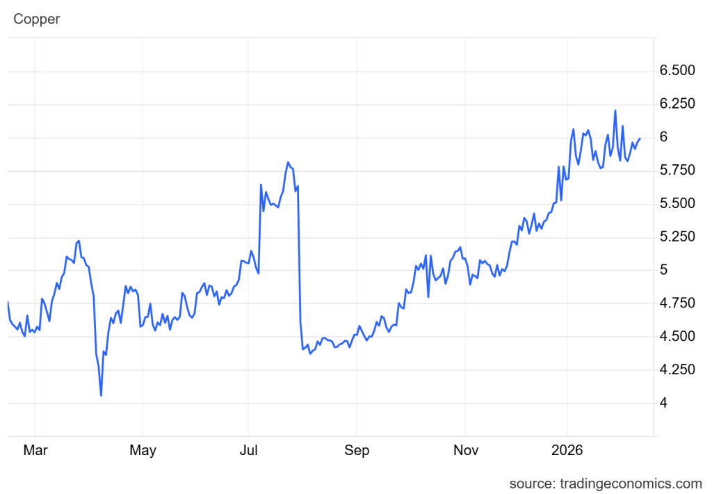 • Harga tembaga naik 1.3% ke level USD6/pon pada Rabu. Harga tembaga masih dalam trend bullish didorong oleh permintaan yang masih meningkat di tengah adanya gangguan pasokan.