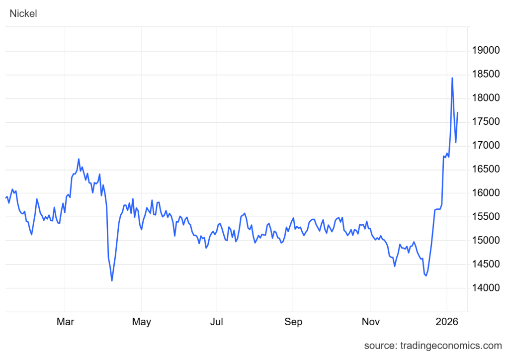 • Harga Nikel naik 3.7% ke level USD17,700/ton pada perdagangan Jumat, rebound dari penurunan hari sebelumnya. Hal ini masih didorong oleh sentimen rencana Indonesia yang akan memangkas produksi Nikel untuk menekan kelebihan pasokan.