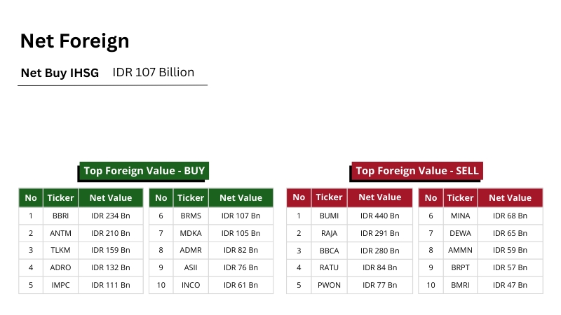 Value transaksi tercatat dengan nilai transaksi jumbo Rp40.10 triliun, jauh lebih tinggi dibandingkan hari sebelumnya sebesar Rp27.45 triliun. Sebanyak 435 saham melemah, 279 saham menguat, dan 97 saham stagnan.