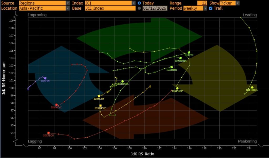 Hang Seng ikut naik 1.39% dipimpin saham teknologi. Sementara Nikkei juga naik 1.61% dengan dukungan saham teknologi dan manufaktur berorientasi ekspor, seiring pelemahan yen yang menopang prospek pendapatan emiten.