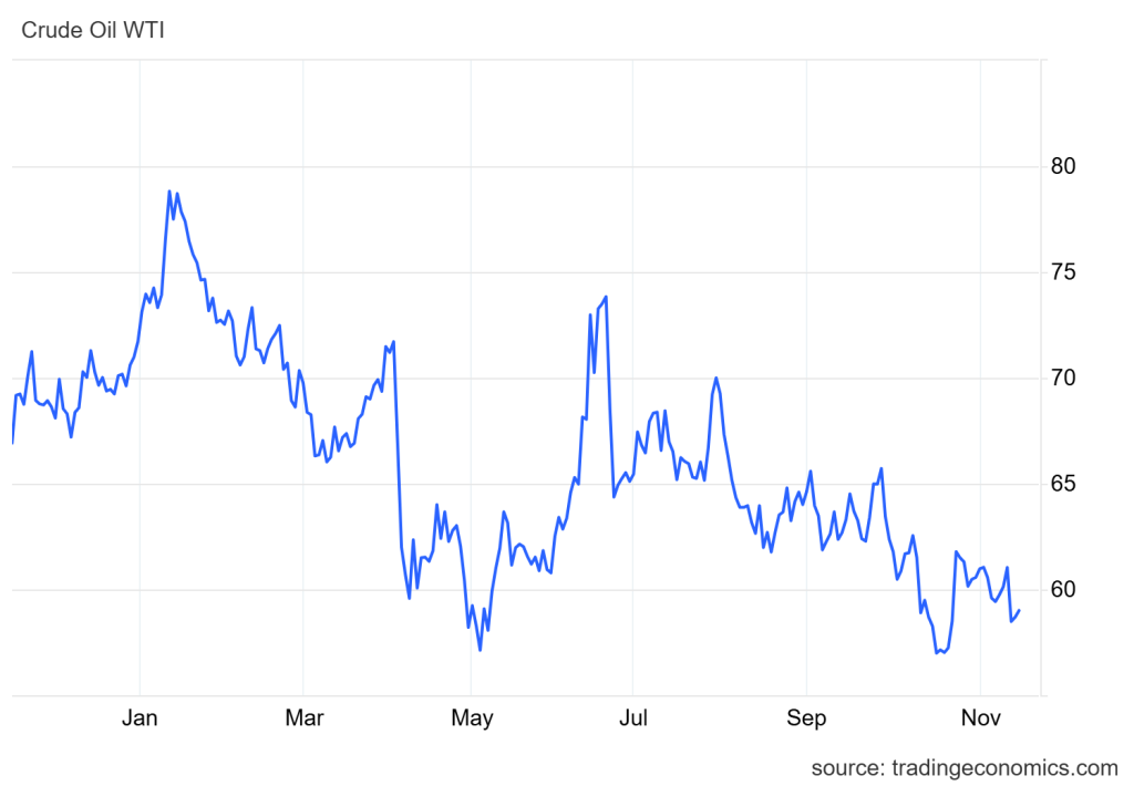 Harga Minyak WTI naik 0.34% ke level USD59/barel pada Kamis, di tengah kekhawatiran persediaan minyak global yang meningkat.
