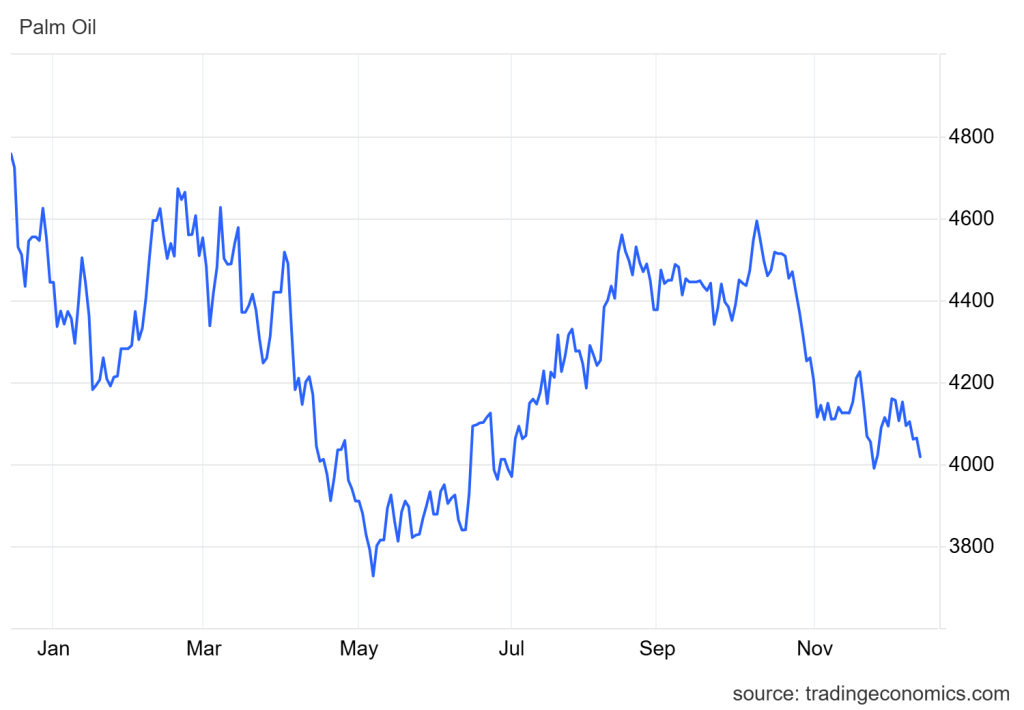 Harga CPO turun 1.13% menjadi MYR4,018/ton pada Jumat dibebani oleh meningkatnya pasokan di tengah penurunan permintaan.