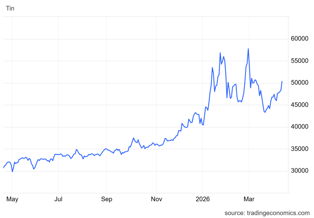 - Harga timah naik 4% ke level $5,000/to didorong risiko gangguan produksi Myanmar, serta spekulasi permintaan dari sektor AI.