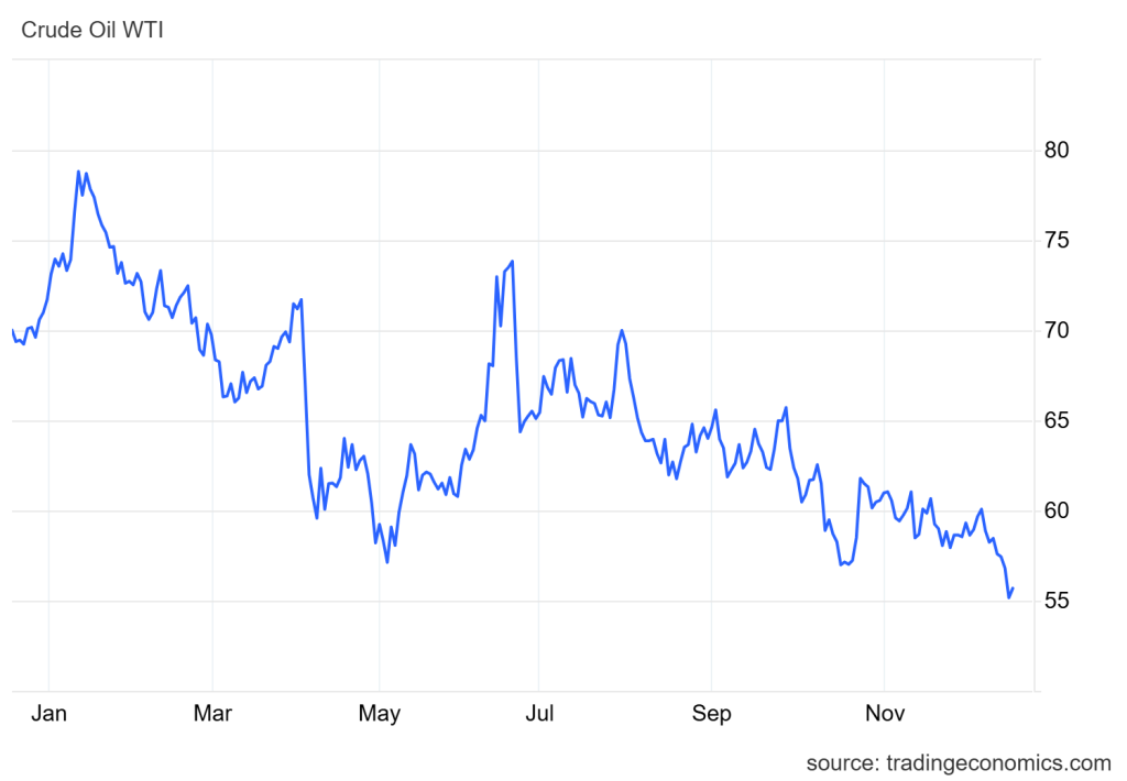 Harga minyak WTI turun 2.9% ke level USD55/barel pada Selasa, dibebani oleh sentimen meningkatnya pasokan yang tidak diimbangi dengan permintaan.