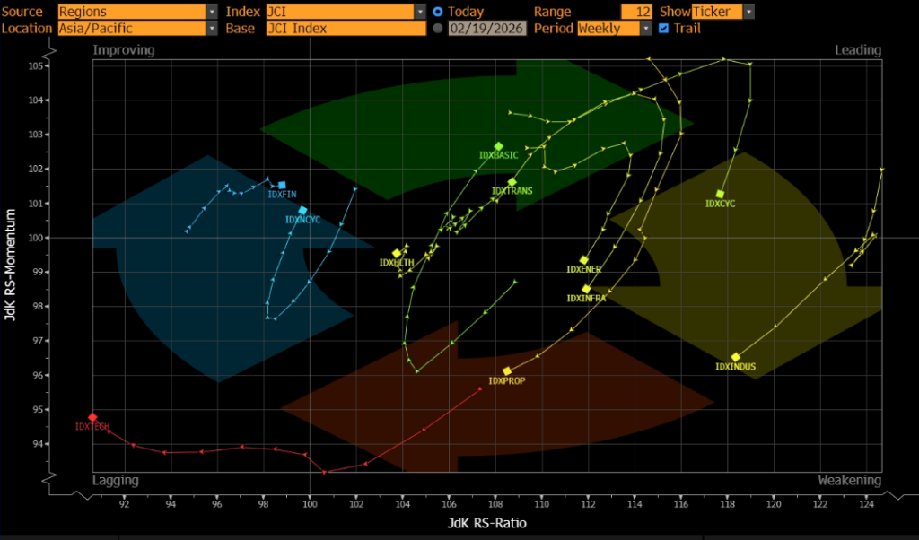 Nikkei naik 0.57% didorong oleh mata uang yen yang melemah tajam sehingga memberikan sentimen bagi perusahaan berbasis ekspor. Dari Australia, ASX200 naik 0.88% didorong oleh kenaikan saham-saham bank besar dan saham-saham yang terkait dengan komoditas.