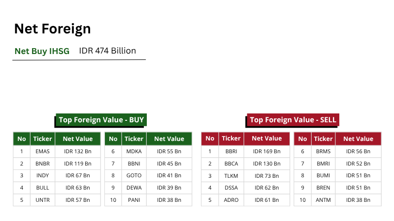 Dari sisi aktivitas, nilai transaksi tercatat sebesar Rp17.71 triliun, lebih tinggi dibandingkan hari sebelumnya sebesar Rp16.92 triliun. Sebanyak 264 saham melemah, 386 saham menguat, dan 168 saham stagnan.