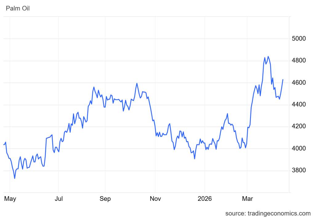 • Harga CPO Malaysia naik ke sekitar MYR 4,600/ton didukung rencana mandatori biodiesel B15 yang berpotensi menyerap pasokan, meski kenaikan tertahan oleh lemahnya ekspor dan prospek permintaan China.