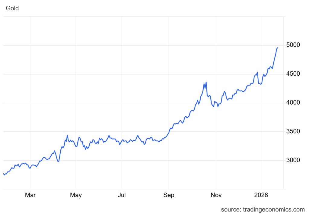 • Harga emas kembali mencetak rekor tertinggi, naik 2% ke level USD4,935/ons pada hari Kamis. Kenaikan ini masih didorong oleh ketidakpastian akibat tensi geopolitik yang menyebabkan volatilitas market tinggi.