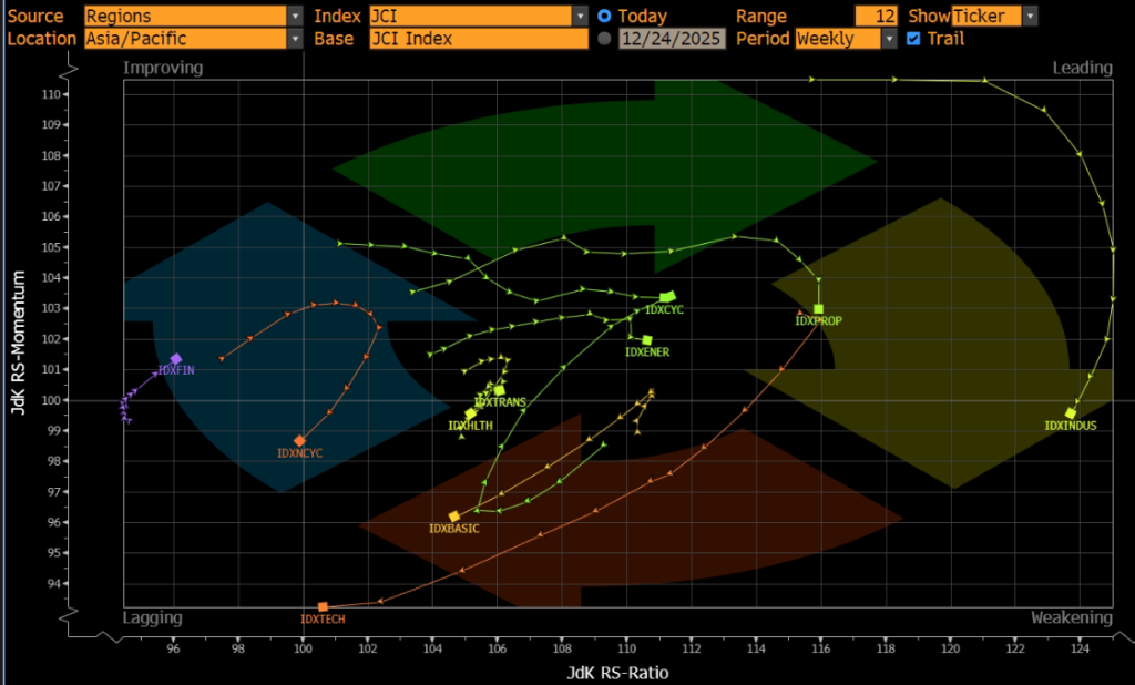 Sentimen dari China, pelaku pasar memantau pertemuan Komite Tetap Kongres Rakyat Nasional China di tengah harapan tambahan stimulus dari pemerintah tambahan. Dari sisi data, inflasi tahunan Hong Kong mencapai 1.2% pada November, tetap pada level tertinggi dalam tiga bulan.
