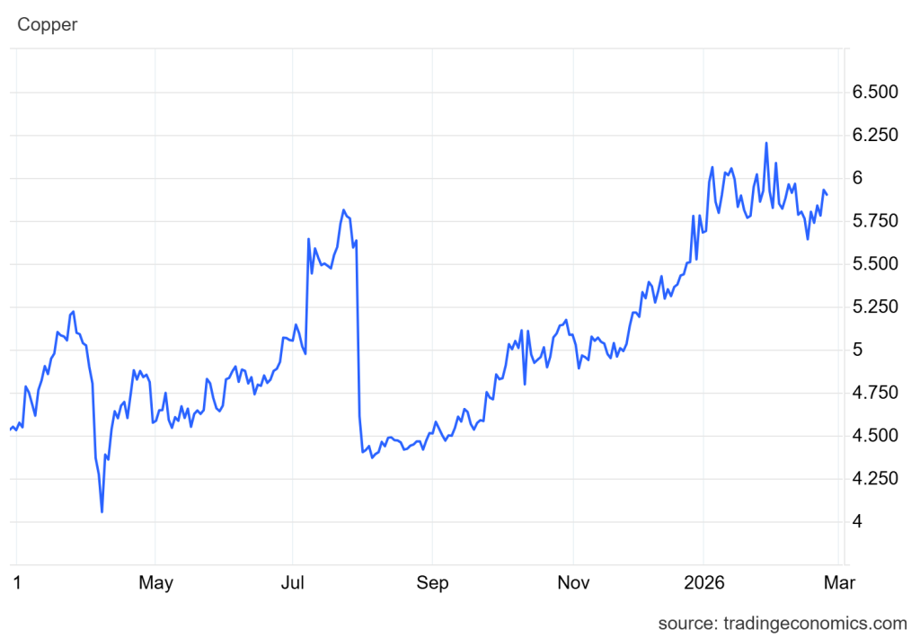 • Harga tembaga naik 2% ke level USD6/pon pada Selasa, rebound dari penurunan hari sebelumnya.