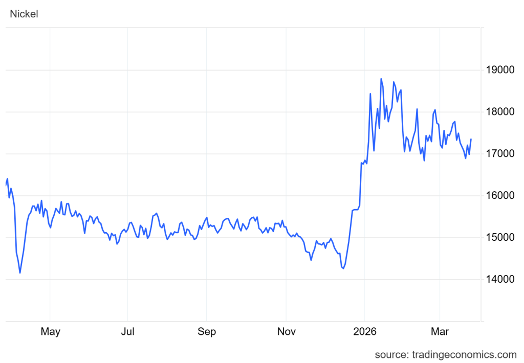 - Harga Nikel naik 2% ke level USD17,345/ton, rebound dari penurunan hari sebelumnya, didorong oleh sentimen harapan baru de-eskalasi konflik Timur Tengah.