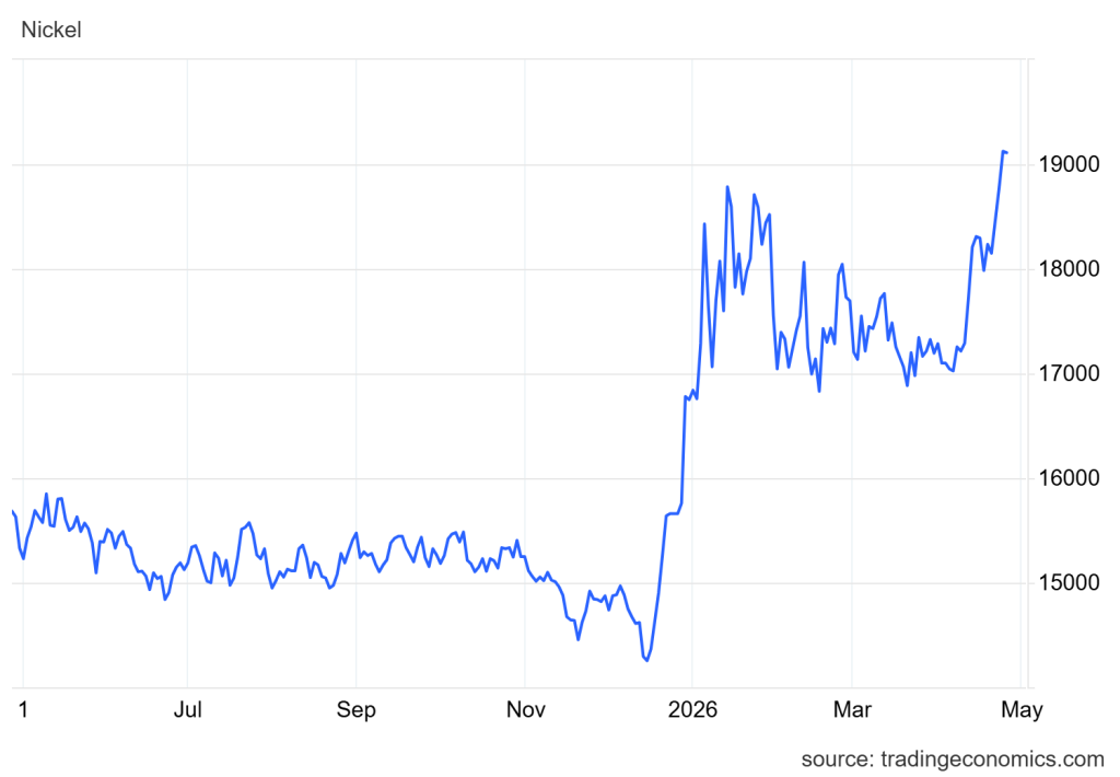 - Harga nikel bertahan di atas USD18,750 per ton, dekat level tertinggi lebih dari tiga bulan, didorong prospek defisit pasokan global pada 2026 seiring pertumbuhan permintaan yang lebih kuat dibanding suplai.