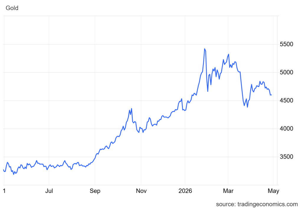 - Harga emas bergerak di bawah US$4,600 per ons pada Rabu setelah anjlok hampir 2% sehari sebelumnya ke level terendah sebulan, tertekan mandeknya negosiasi damai AS-Iran dan penutupan Selat Hormuz yang memicu kekhawatiran inflasi meningkat.