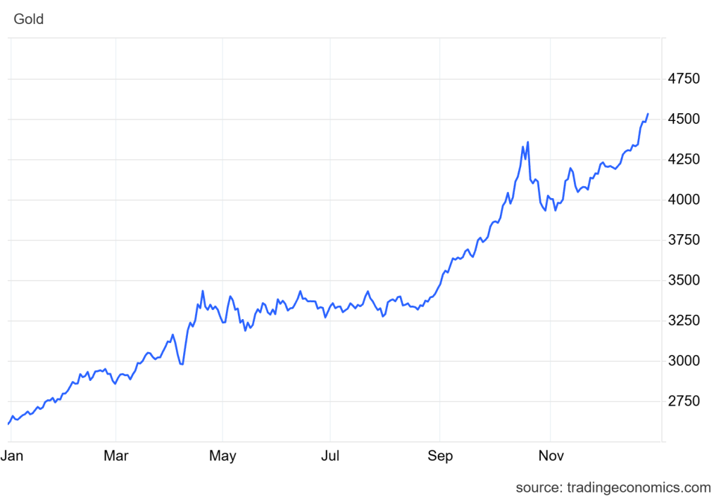 Harga emas mencapai rekor tertinggi baru ke level USD4,532/ons, naik 1.15% pada Jumat. Hal ini didorong oleh permintaan emas yang kuat di tengah meningkatnya ketegangan geopolitik Rusia-Ukraina.