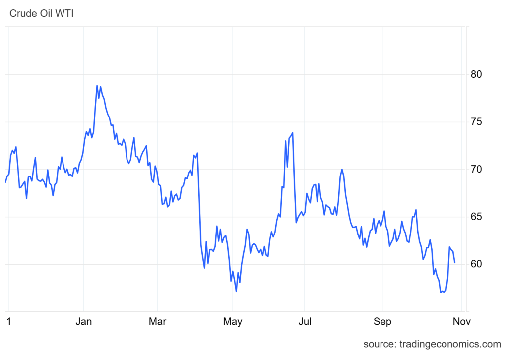 Harga minyak WTI turun 1.8% ke level USD60.1/barel pada Selasa, dibebani oleh sentimen kelebihan pasokan akibat adanya sinyal dari OPEC+ yang kemungkinan akan menaikkan produksi lagi.