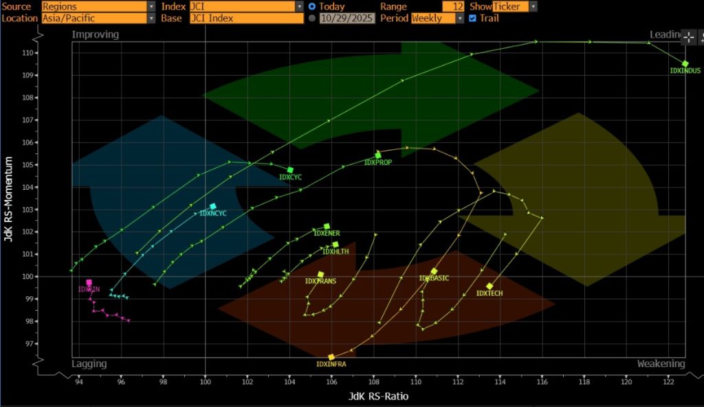 Sentimen dari Jepang datang dari AS-Jepang yang menandatangani perjanjian kerangka kerja untuk mengamankan pasokan mineral tanah jarang dalam upaya mengurangi ketergantungan terhadap China. Selain iu, Trump memberi sinyal akan menurunkan tarif terkait fentanyl terhadap China, sementara China dilaporkan akan kembali membeli kedelai AS.