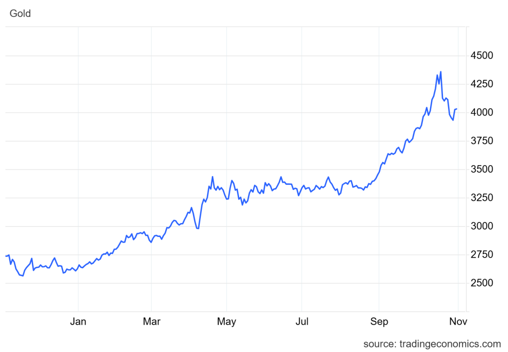 Harga emas rebound 2.4% ke level USD4,025/ons pada Kamis, didukung oleh permintaan emas yang kuat dari bank sentral. Menurut Dewan Emas Dunia, bank sentral global membeli sekitar 220 ton pada kuartal ketiga, meningkat 28% dari kuartal sebelumnya dengan Kazakhstan tetap menjadi pembeli terbesar.