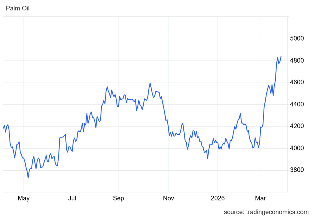 - Harga Palm Oil Malaysia naik mendekati MYR 4,800/ton didukung kenaikan minyak nabati lainnya.