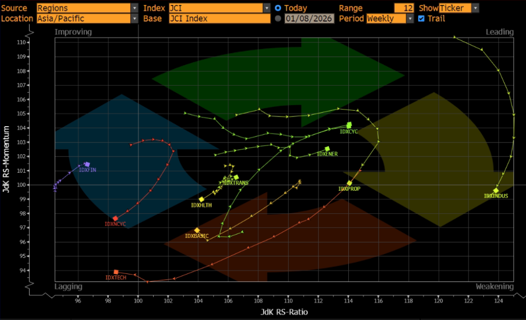 Saham-saham di sektor energi menguat didorong oleh kenaikan harga minyak mentah. Hal ini juga didorong oleh sentimen mengenai AS yang berencana untuk mengendalikan minyak Venezuela dalam jangka panjang.